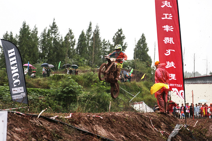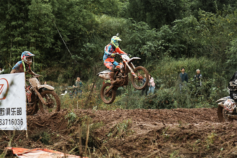 泥濘的賽道里,車手們在賽場上時而雙峰越野、時而平臺跳躍。一系列的高難度動作讓賽事驚險刺激、驚心動魄、扣人心弦,目不暇接。