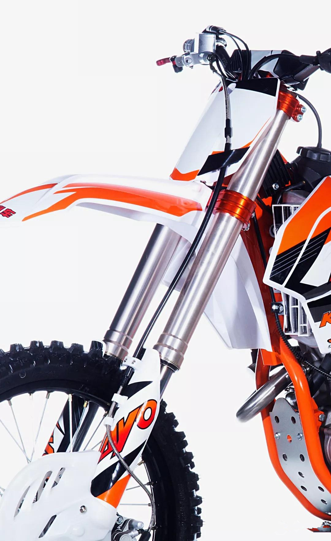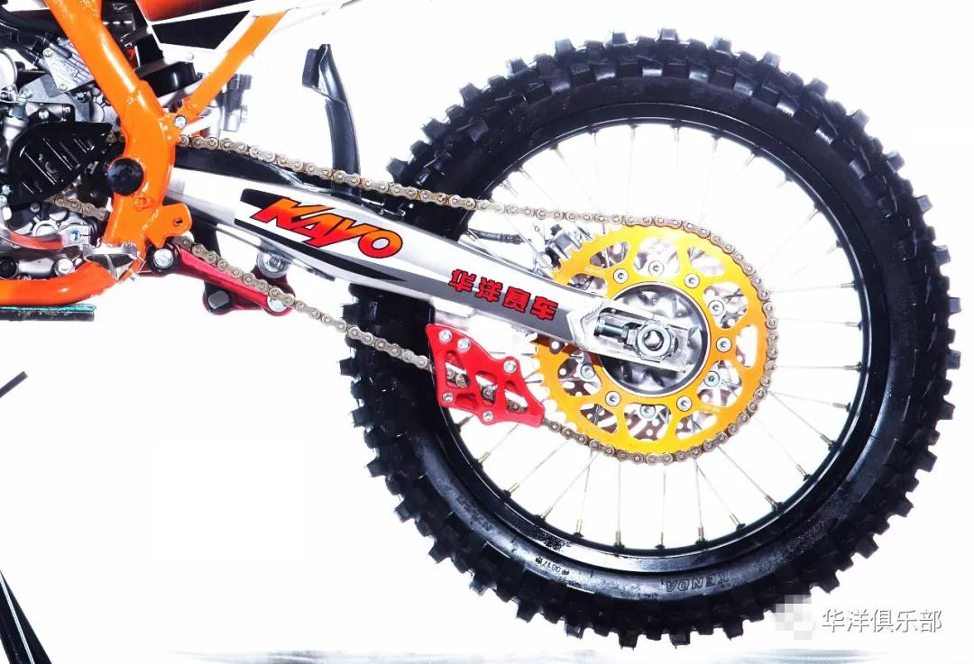 國際標(biāo)準(zhǔn)的高通過性能的前21寸后19寸(進(jìn)口車標(biāo)配)輪輻尺寸:全新匹配的TAIWAN KENDA工廠110/90-19規(guī)格的專用中硬度場地花紋的后輪胎,不但有效增大了接觸面積,增強(qiáng)后輪的驅(qū)動力,而且完全與國際品牌的專業(yè)進(jìn)口車尺寸完全一致,最大限度解決了18寸后輪通過性差的問題,使得無論在場地通過搓板路面還是在林道障礙時(shí)更加輕松。